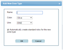 If desired, you can define additional zone types. Configuring user-defined zone types enables you to tailor risk profiles to your exact network topology. Each user-defined zone type is based on one of AFA's built-in zone types.