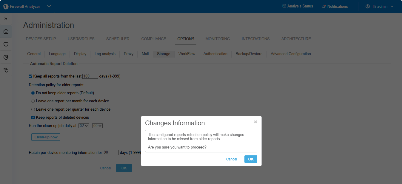 If the number of days to retain reports is greater than the number of days to retain the monitoring information, a confirmation message appears.
