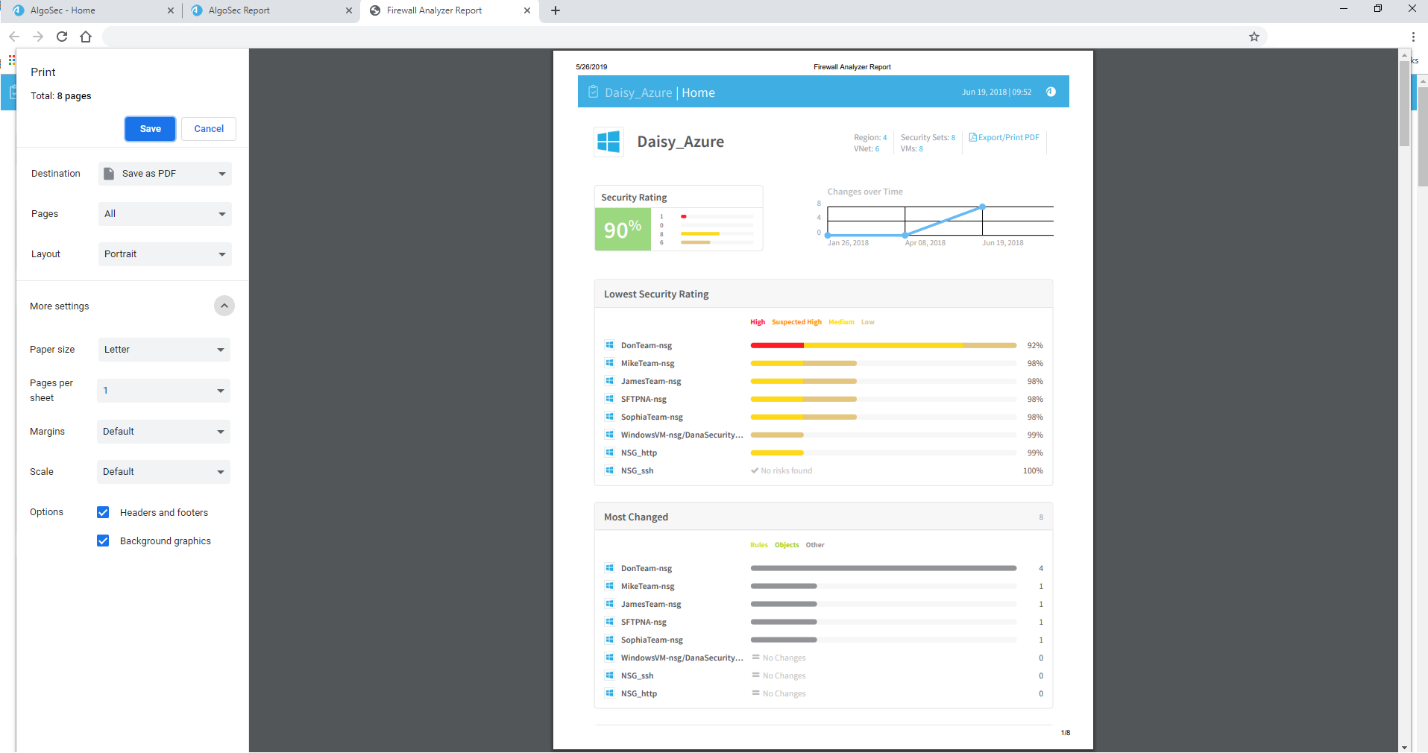 Tip: You can define, per brand, which Rules columns you want to appear in the exported PDF of the Changes Summary Report. You can also scale the Rules and NAT Rules tables so they can fit in the exported pdf. See this AlgoPedia article.