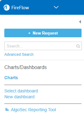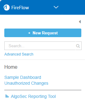 The AlgoSec Reporting Tool is available from the main menu on the left in AFA or FireFlow, or from AppViz.
