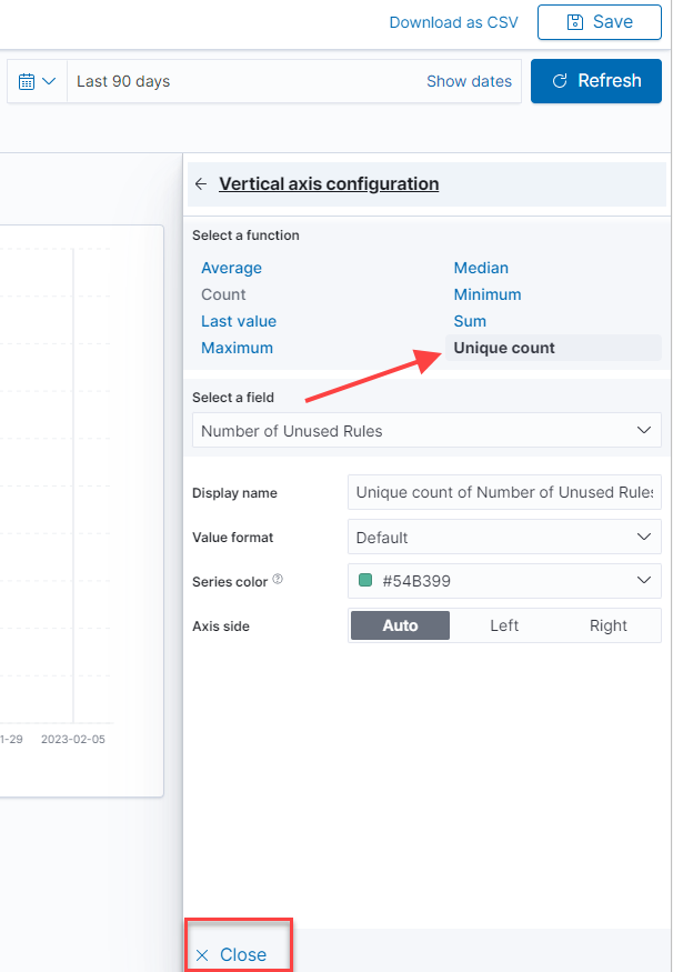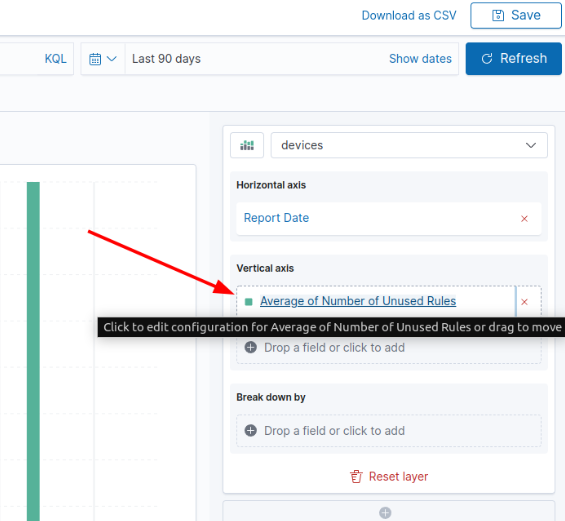 On the right panel, click on Average of Number of Unused Rules in order to change the vertical axis.