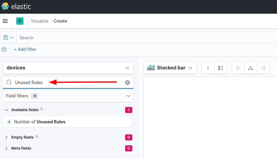 Drag and drop the Number of Unused Rules field to the canvas area.