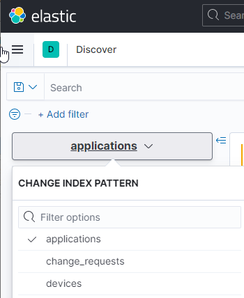 eye icon to open it Discover, Visualize, or Dashboard areas.