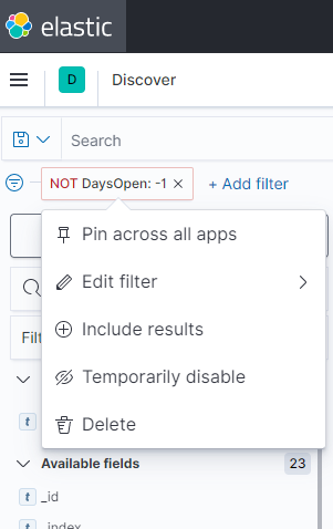 Tip: Alternately, in the Discover page, select a field in the Available Fields list, and click Visualize . For more details, see Visualize data straight from the Discover page.