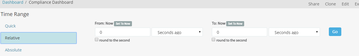 Relative Enables you to define date ranges from a specified time ago or from now, to another specified time ago or from now.