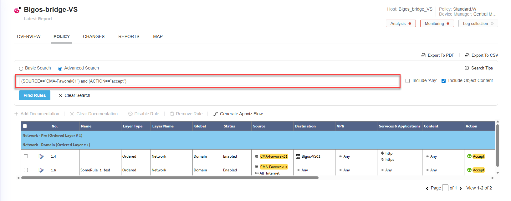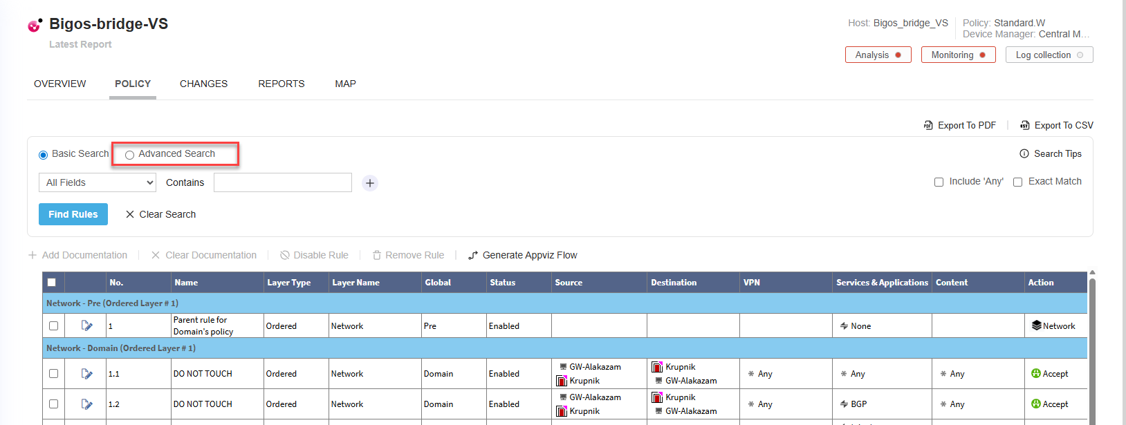 Otherwise, the recommended method to locate rules is through the Policy tab. For more information, see Policy Search. NAT rules do not appear in the Policy tab.