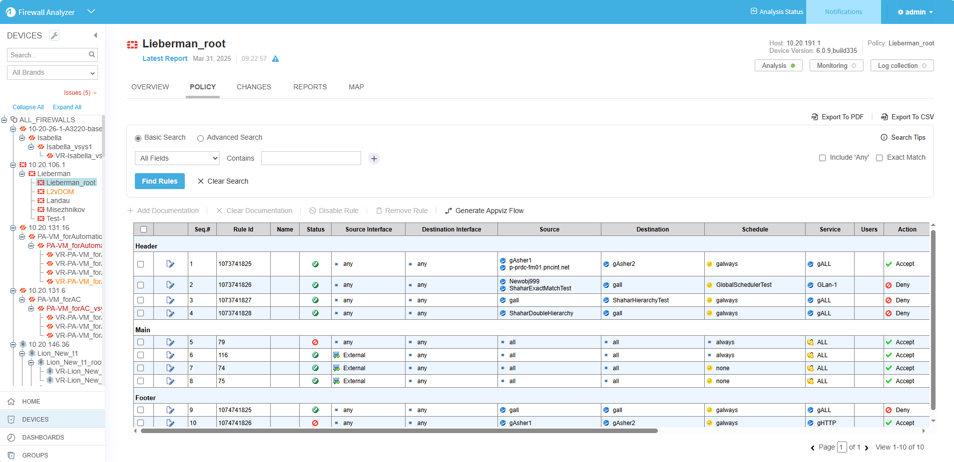 2. Search to locate the devices with rules that you want to disable or remove. For details, see Policy Search.