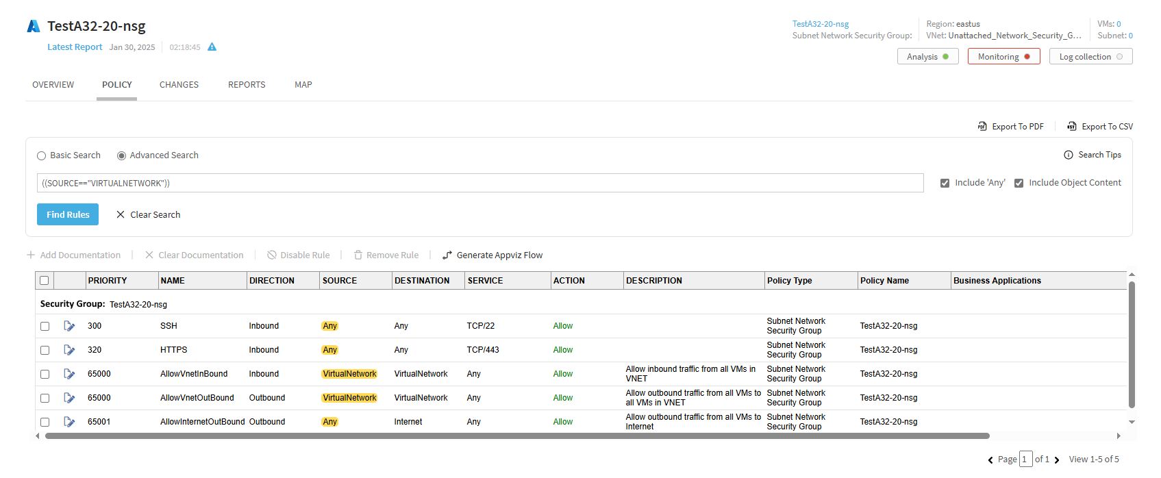 Note: Not all rule types can be exported directly to AppViz. For a list of rules, see View policy data.