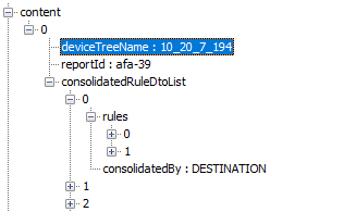 Get a list of consolidated rules for a specified device if it has no children. For a specified parent device, get the list of consolidated rules for each of its children. Two or more rules can be consolidated if they differ in only one of their main fields: Source / Destination / Service.