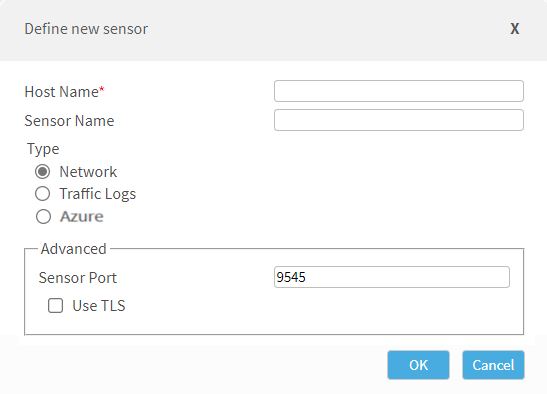 Specify sensor Type, the Sensor Port, and select Use TLS.