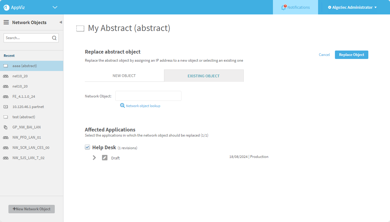 Note: The history of deleted network objects can be viewed in the activity logs. For details, see Network object activity logs.