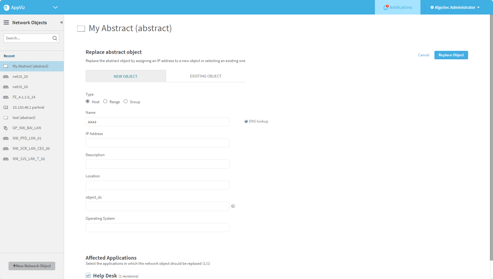 Note: This procedure is not relevant when AppViz is configured to open a FireFlow object change request to change device network object definitions.
