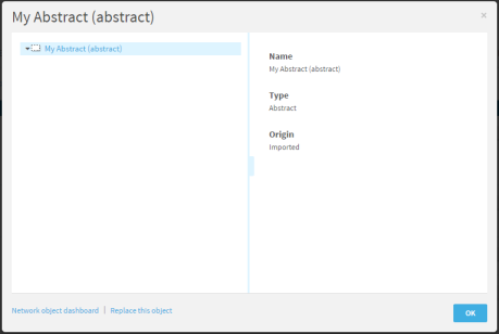 The Replace abstract object page appears, displaying the Existing Object tab.