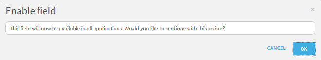 .The Enable field confirmation dialog is displayed.