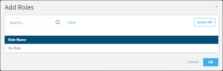 . The matching roles appear below the search box. Select roles from the list. - To deselect roles, click Clear.
