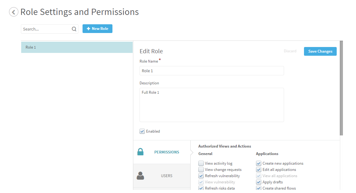 You can give roles permission to view or edit specific applications via API. Users assigned a role inherit all permissions granted to the role. The procedure below describes how to manage application permissions via API for roles.