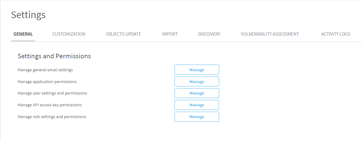 In the Settings and Permissions area, next to Manage user settings and permissions, click Manage.
