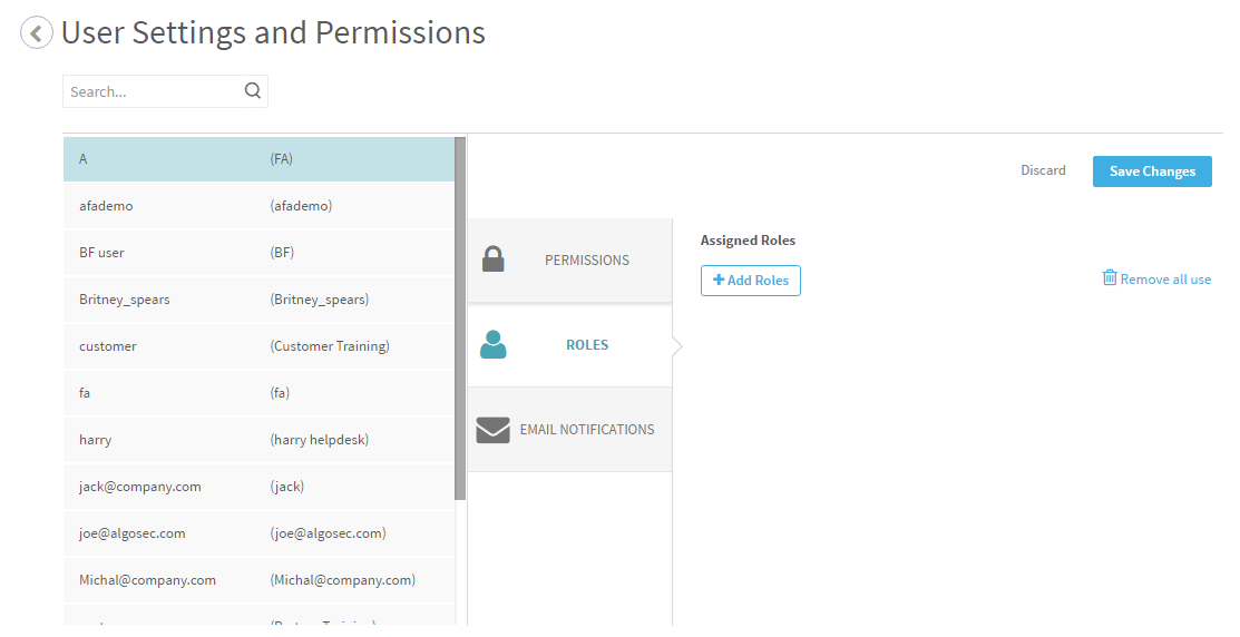 . - To revoke all of the user's roles, click Remove all users.