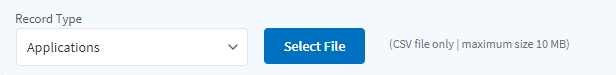 4. Use the Record Type dropdown to select the type of record to import: Applications, Flows, Contacts, or Application Contacts.