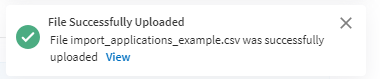 The AppViz CSV import interface allows you to import CSV data, track the status history of imports, and access detailed error information when needed.