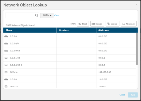If an IP address/range or service definition is entered, then all servers/services which intersect with the given content.