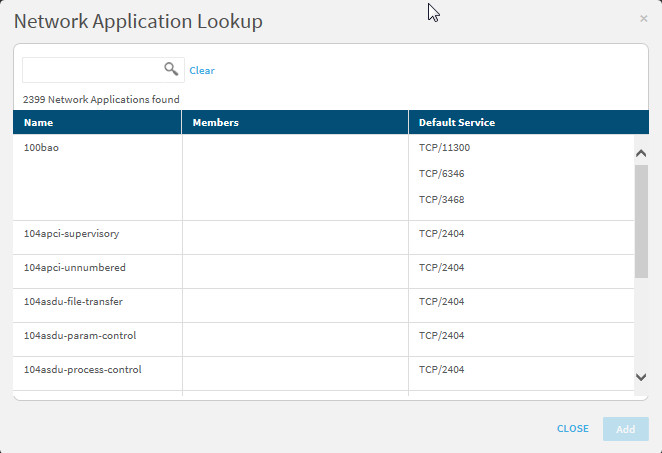 To search for network applications, type all or part of an application name in the search box, and press enter.