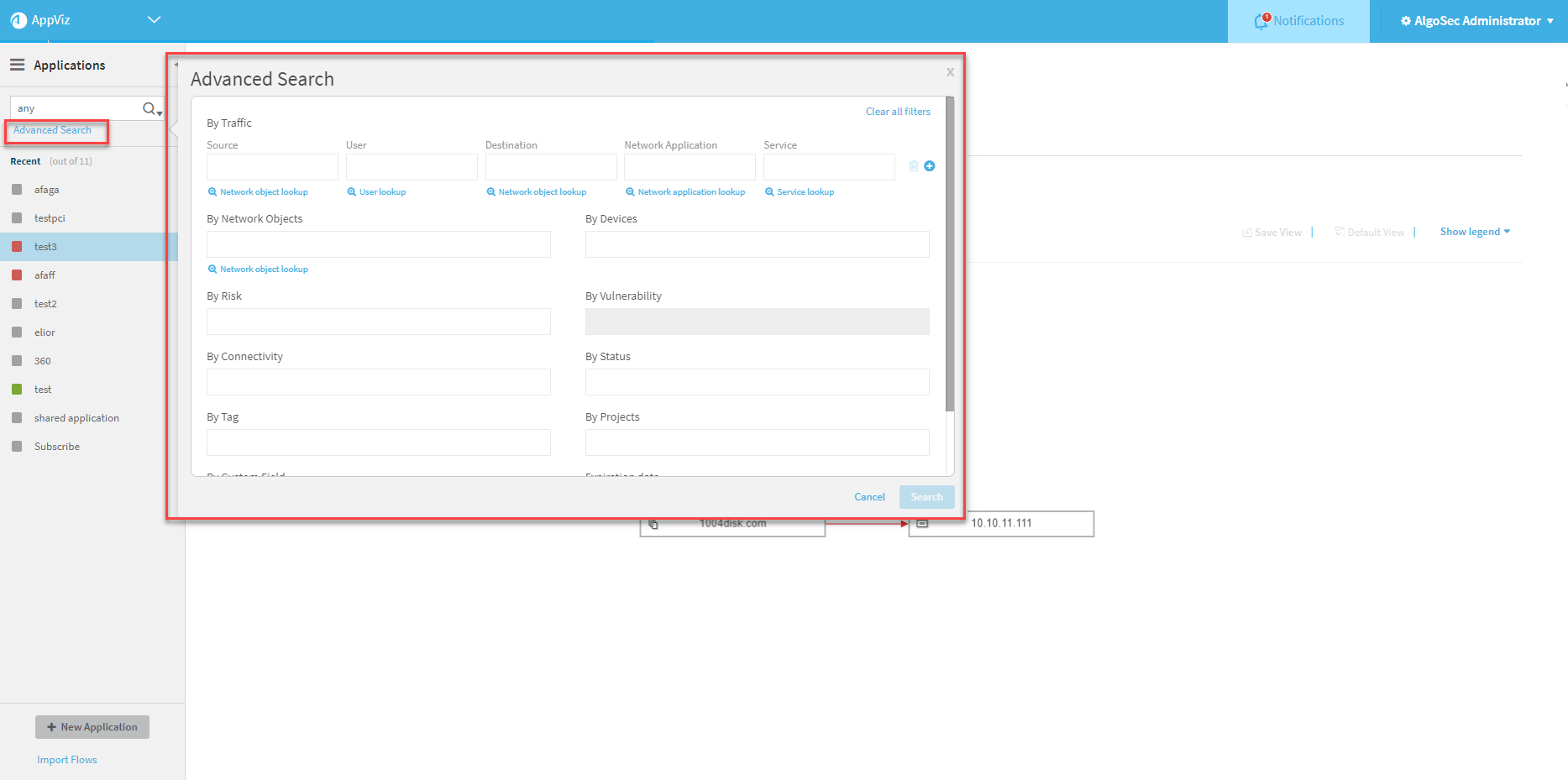 In AppViz, an application is a business need that may require specific traffic flows to be allowed in your network security policy. Typically, an application is associated with the various user communities that use its services and manage the application.