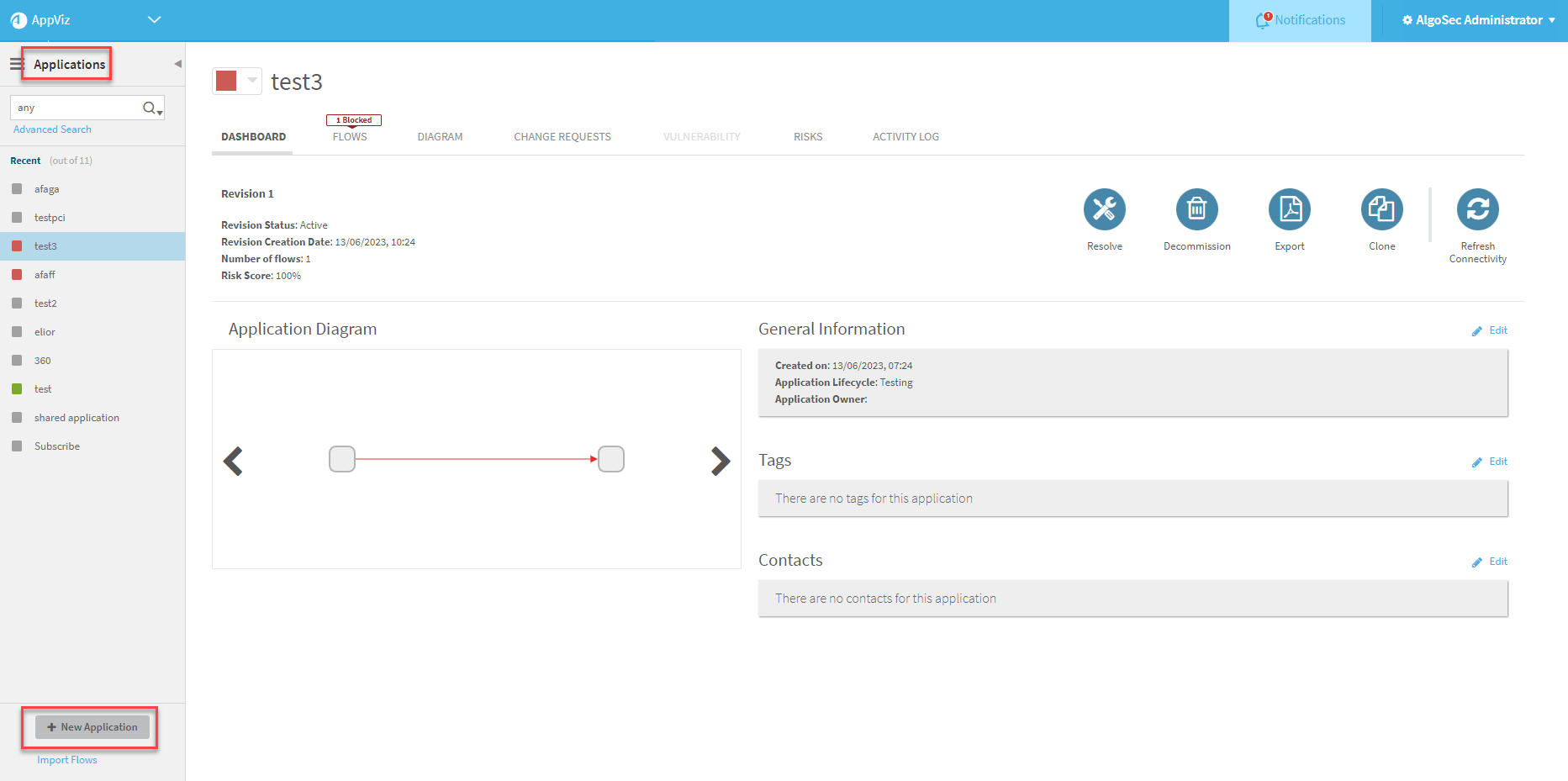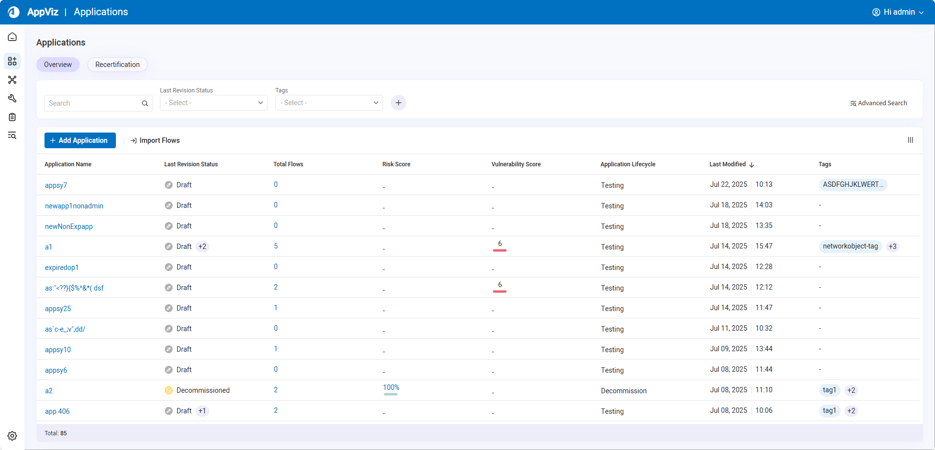 Use the Applications page to manage applications added to AppViz . The page provides two tabs, as follows: