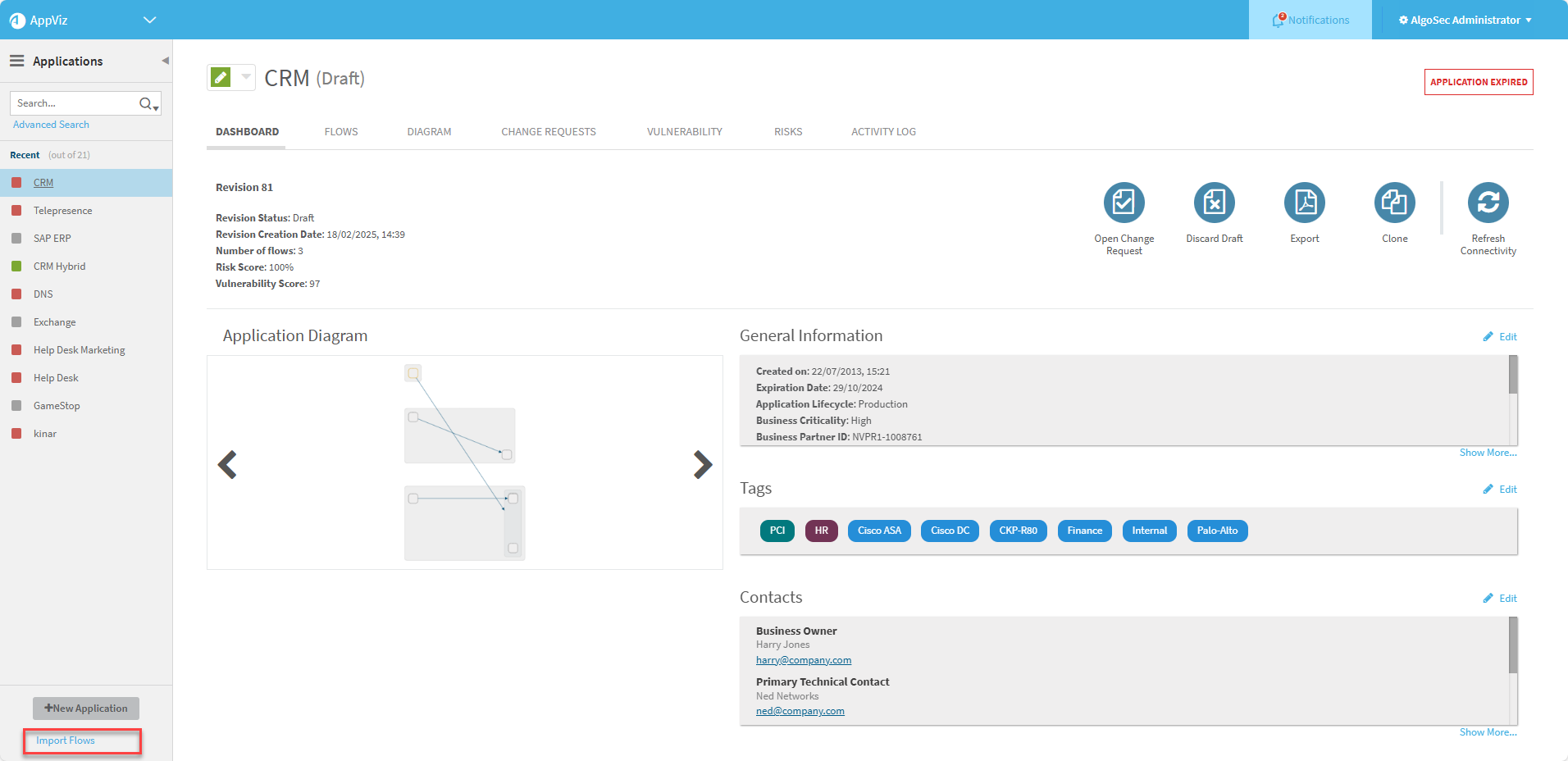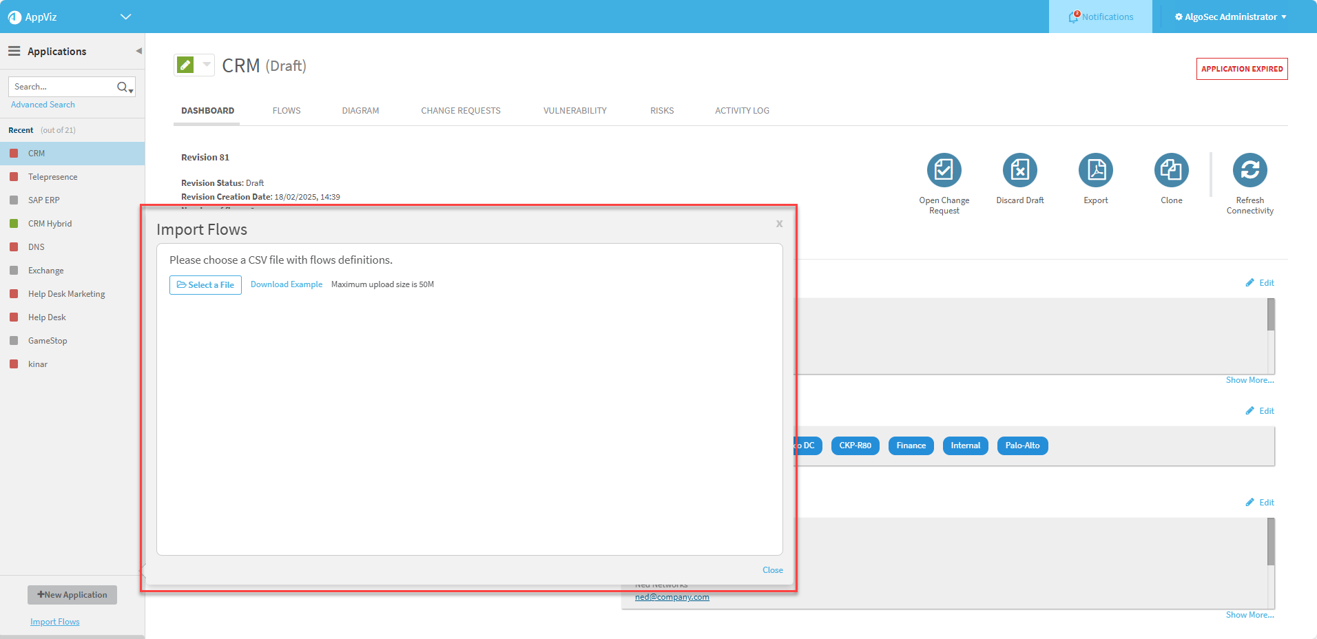 To import flows with flow optimization, see Import application flows to AppViz from a File.
