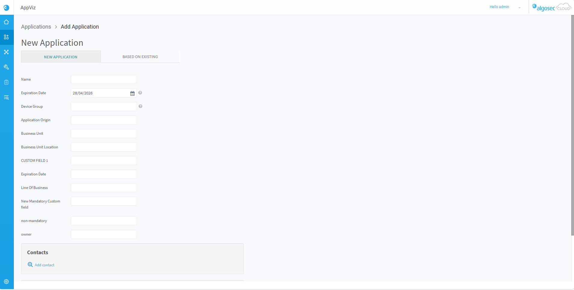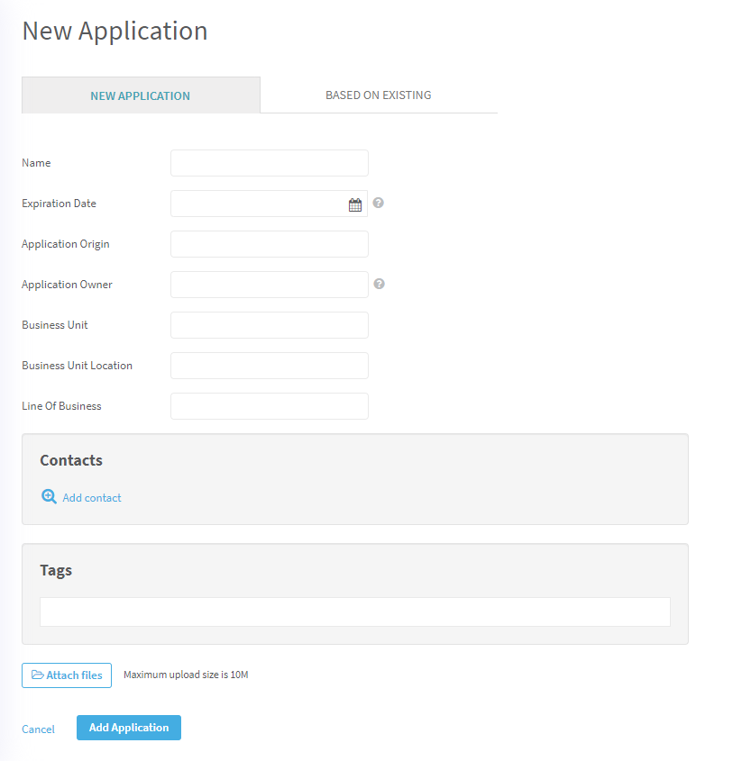 [Optional] Create a new application from the New Application tab by filling out the relevant fields (see Business applications) and then skip Step #4 (Clone an existing application),