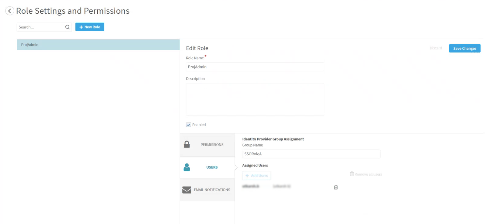 Note: When SSO is enabled, users appear in the Access Management page USERS tab only after first login. They are assigned a default system role User, which can be edited later.