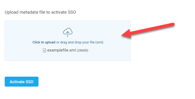 Upload the XML metadata file provided by the IT admin and then click Activate SSO.