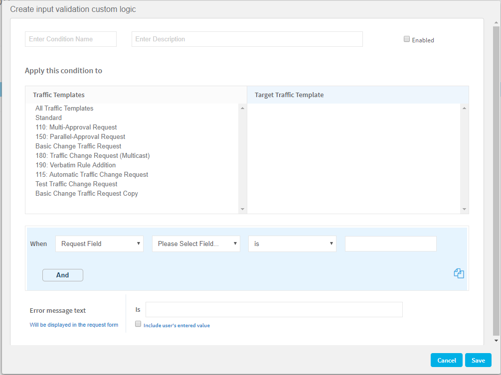 Note: Input validation for change request fields is only supported for traffic change request templates (IPv4 only).