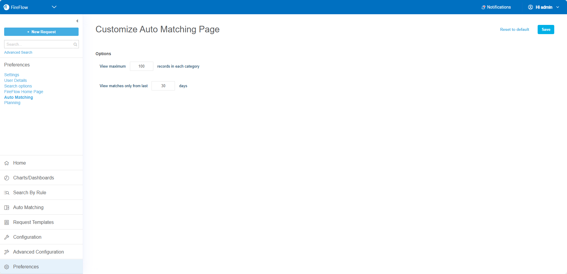 - In the View maximum records in each category field, type the maximum number of records to display in each of the Auto Matching page's sub-lists and in the Auto Matching > Changes page.