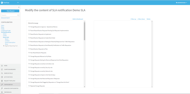 .The selected element moves to the right list box. The order that the elements appear in the box represents the order in which they will appear in the SLA notification.