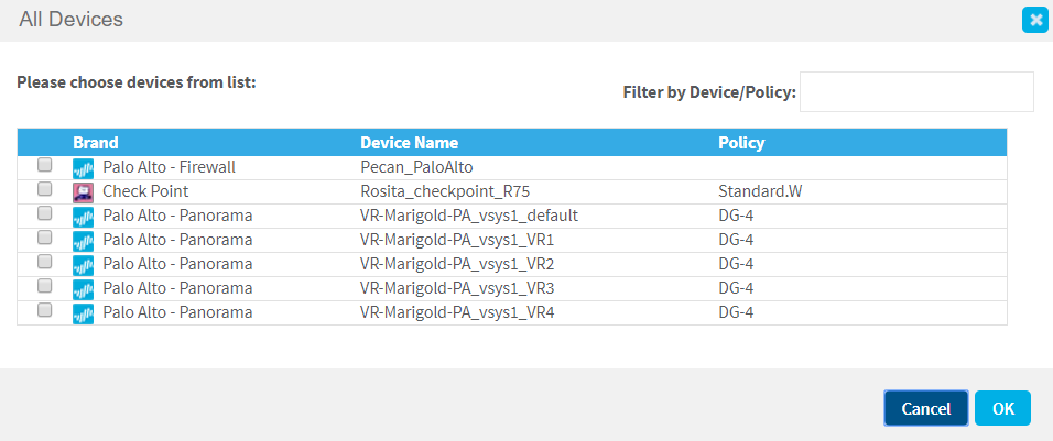 Note: Light-blue highlighting is only relevant when deleting objects from Check Point devices.