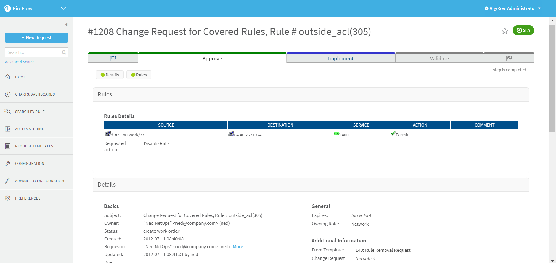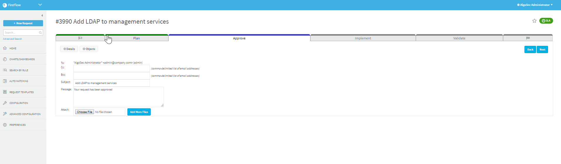 After a generic change request has been created, it starts the Approve stage of the FireFlow change request lifecycle. In this stage, you perform a manual check for risks entailed in implementing the requested change.