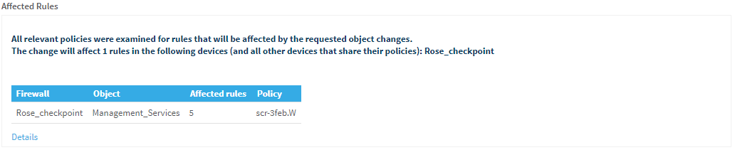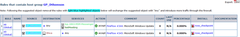 FireFlow returns a list of affected rules: