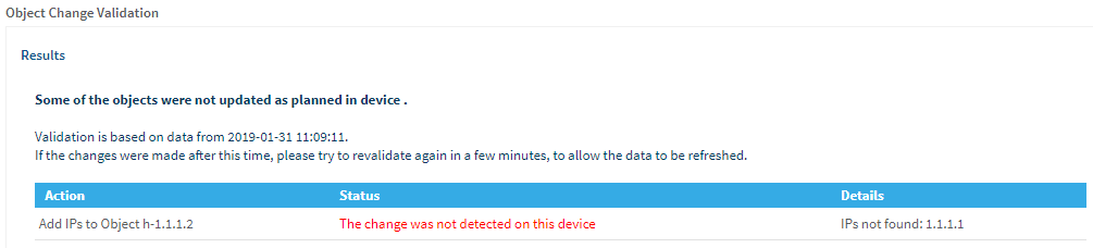 The network operations user validates the implemented device policy changes against the change request.