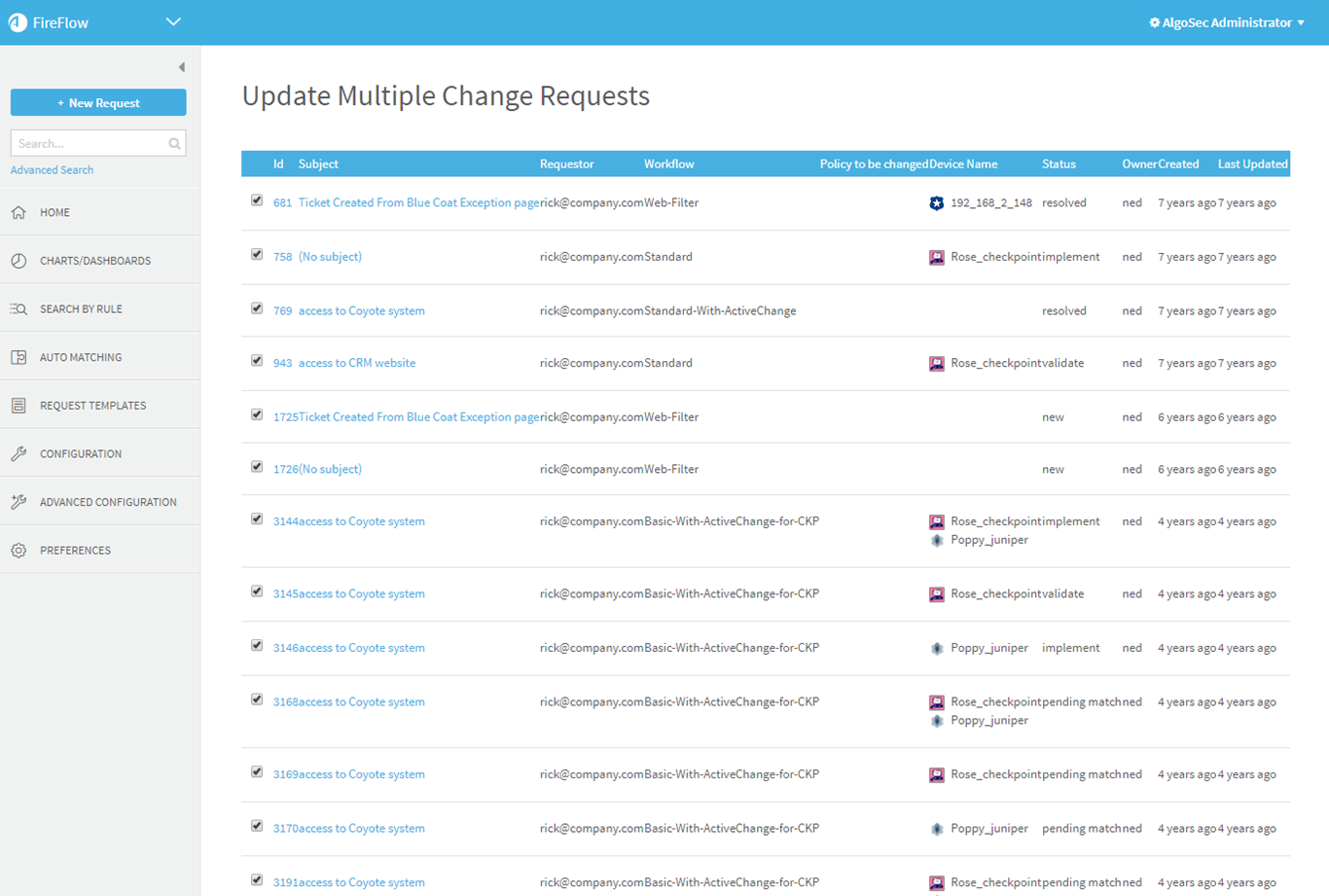 Update Multiple Change Requests