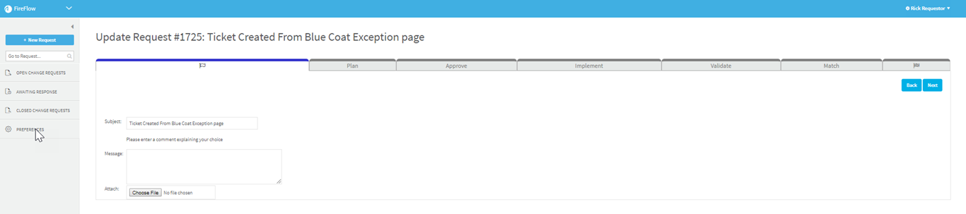 Type the ID number of a related change request in an external change management system that is integrated with FireFlow.