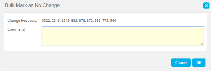 - In the Change Request Id field, type the ID number of the change request that should be associated with the selected changes.