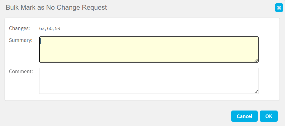 - In the Summary field, enter the summary of the bulk changes you are marking.