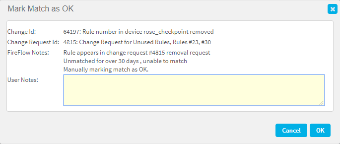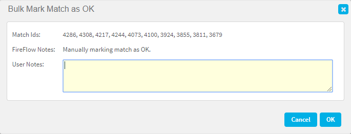 , and then click Match OK.The Mark Match as OK dialog box opens.