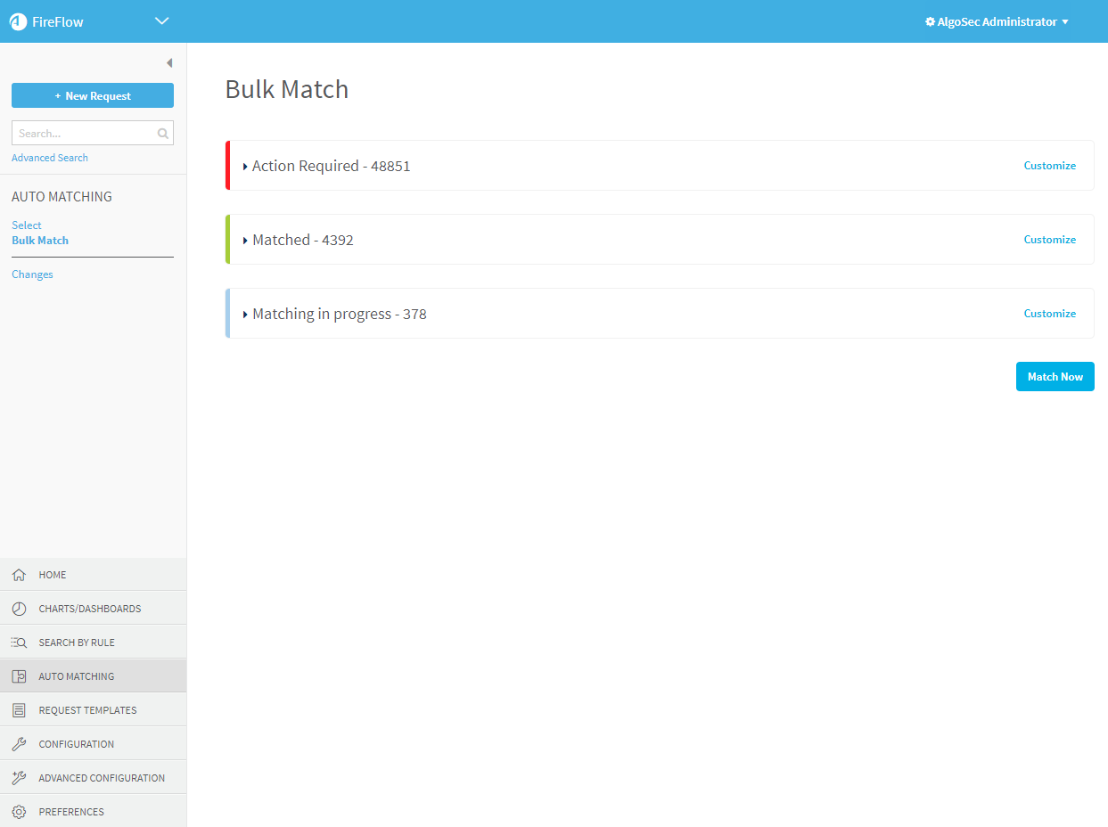 In the main menu, click Auto Matching, and then click Bulk Match.