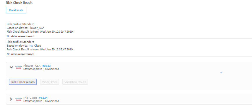3. If the change request includes an "Allow" action, FireFlow initiates a risk check, to determine whether implementing the requested Allow traffic change will introduce risks.