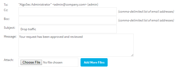 Once the changes have been successfully validated, the network operations user composes an email message in FireFlow, notifying the requestor that the requested changes were implemented.