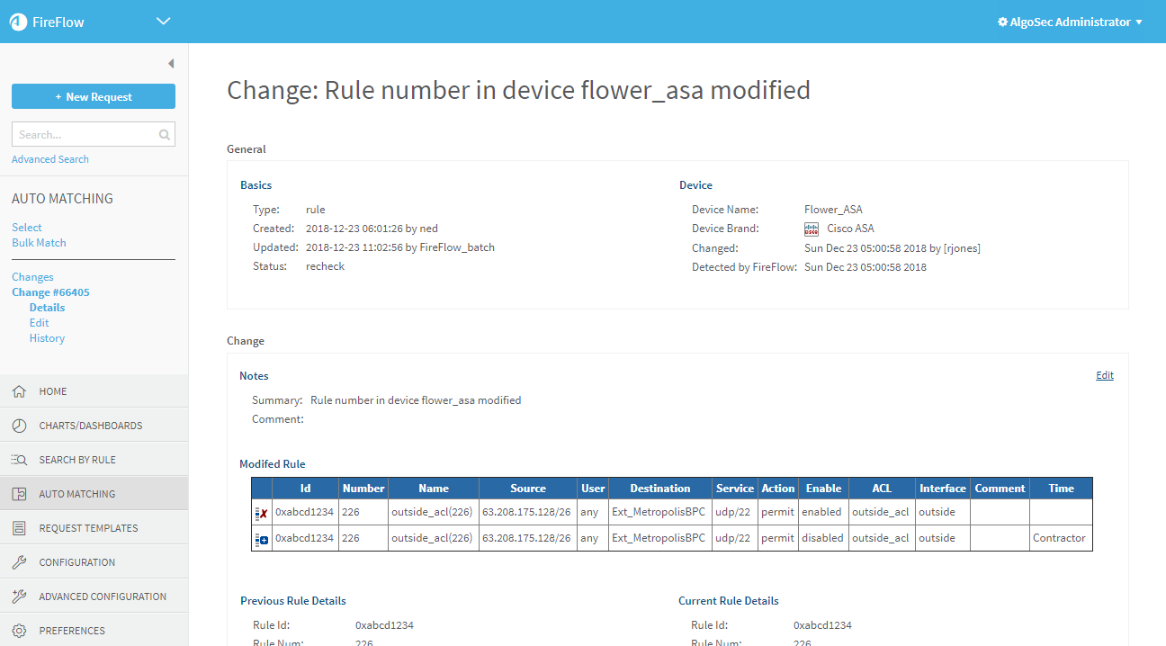 • Details about the rule before and after the change was made.