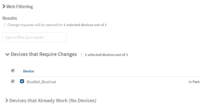 - If there is more than one device that is relevant to the change, the network operations user selects the devices on which to implement the change.