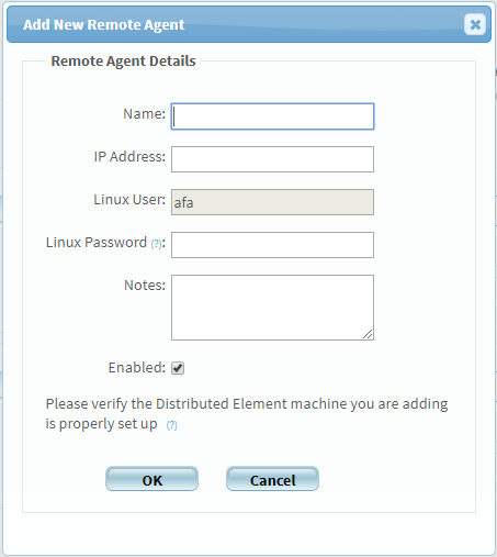 6. Click OK. If you added a new Remote Agent, AFA attempts to connect to it.